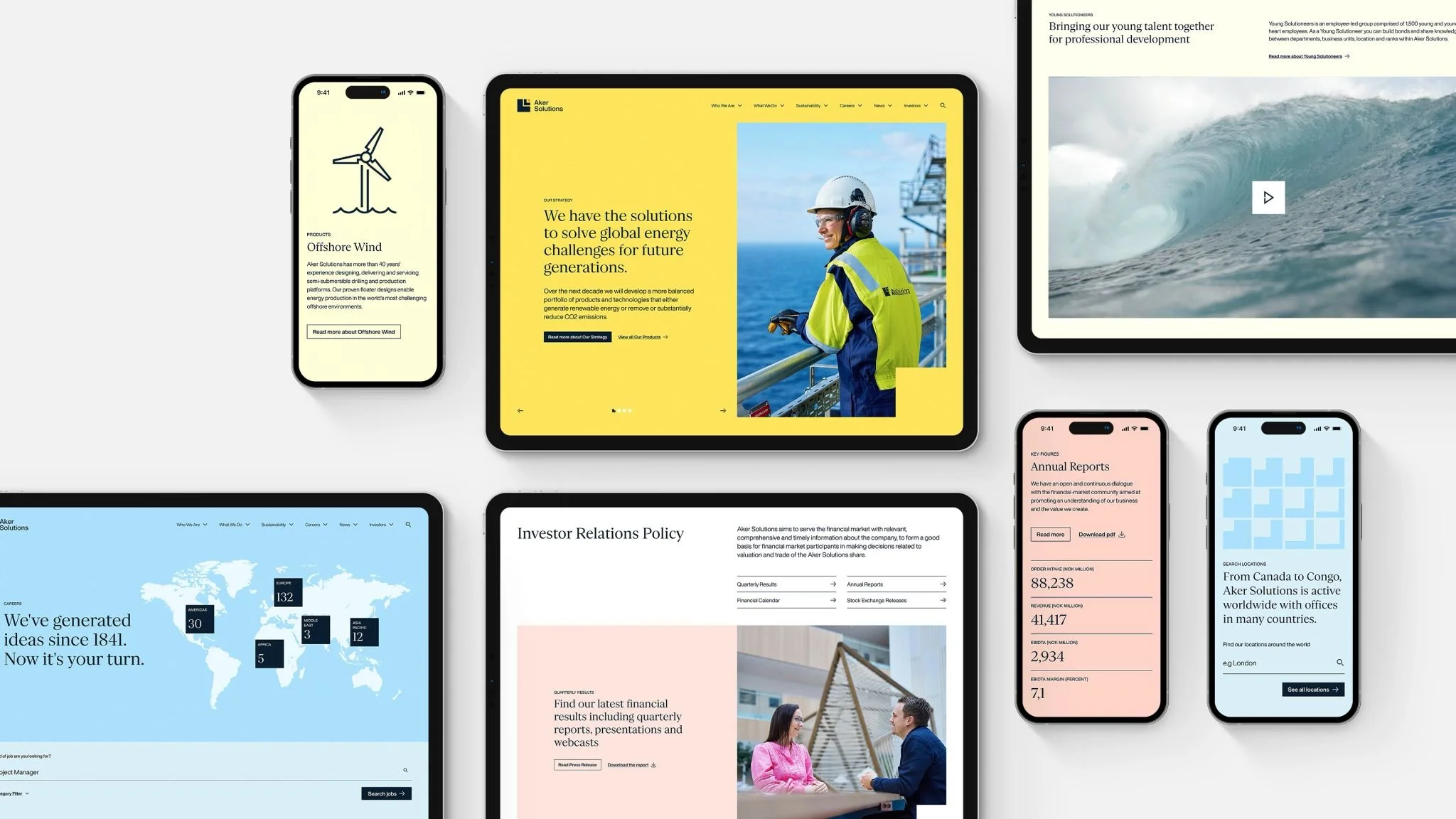 Aker Solutions innovative løsninger muliggjør lavkarbon olje- og gassproduksjon og utvikling av fornybare løsninger for å møte fremtidens energibehov. I forbindelse med dette energi-skiftet ønsket Aker Solutions en brand refresh og strategi for selskapet. Identiteten skal kommunisere deres verdier: solutineers, safeguarders, changemakers and co-creators.